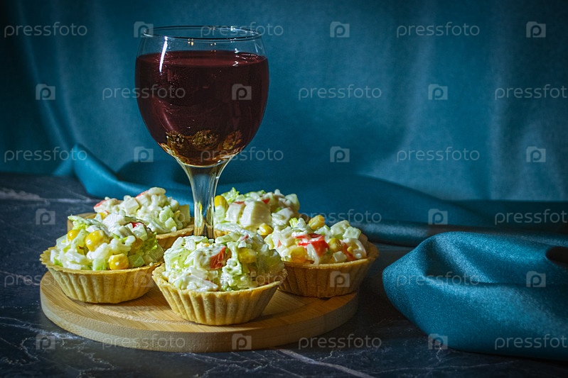 Бокал вина и тарталетки