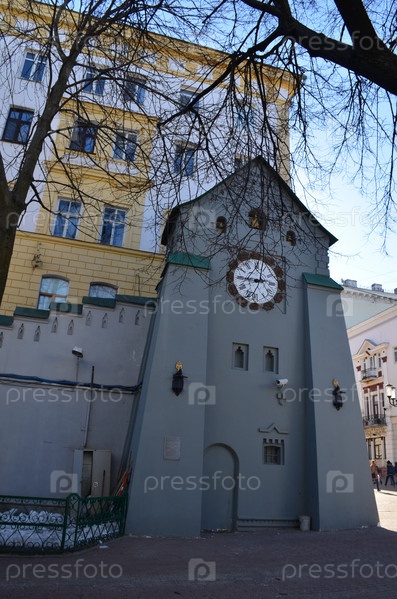 Башня с часасми на пешеходной Большой Покровской улице в Нижнем Новгороде