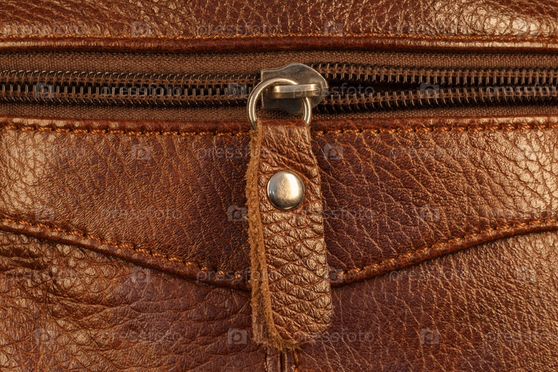 Фрагмент кожаной сумки на молнии. Макрофотография