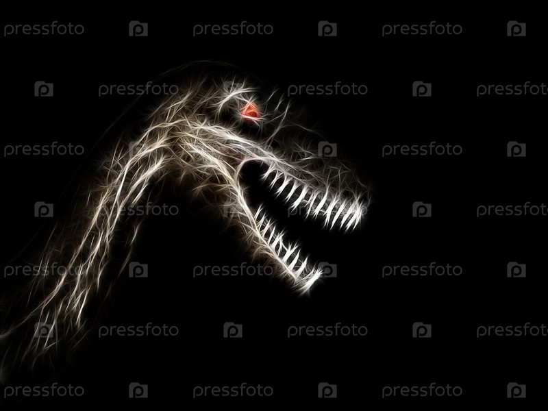 Иллюстрация морды неизвестного монстра крупным планом на черном фоне