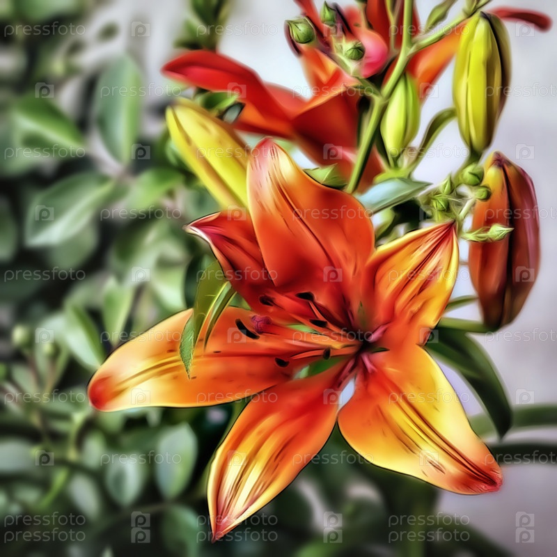 Иллюстрация цветка оранжевой цветущей лилии крупным планом