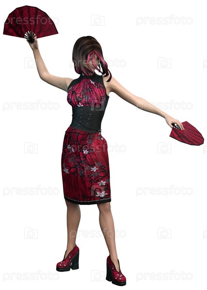 3D азиатская девушка с двумя поклонниками