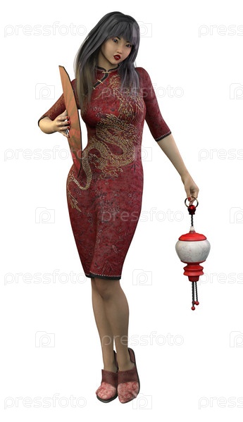 3D-азиатка с вентилятором и фонариком