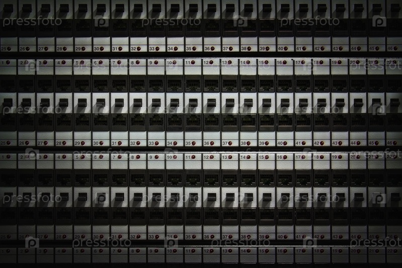 Патч-панель 6-й категории крупным планом в качестве фона или веб-баннера