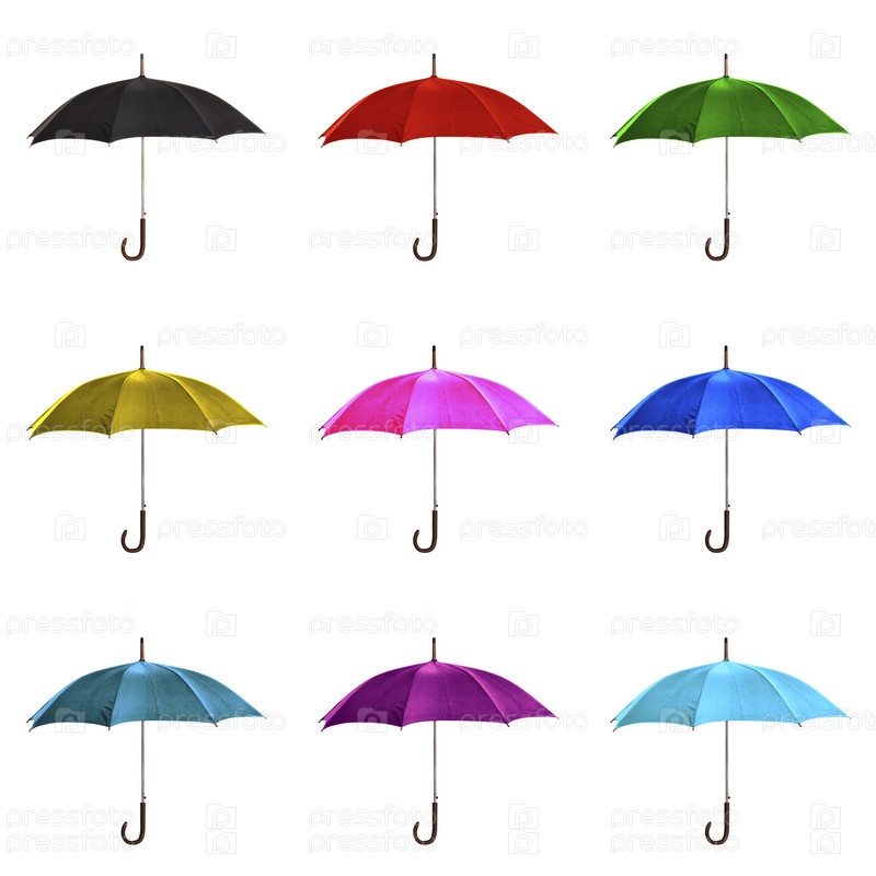 Набор изображений открытого цветного зонтика на белом фоне