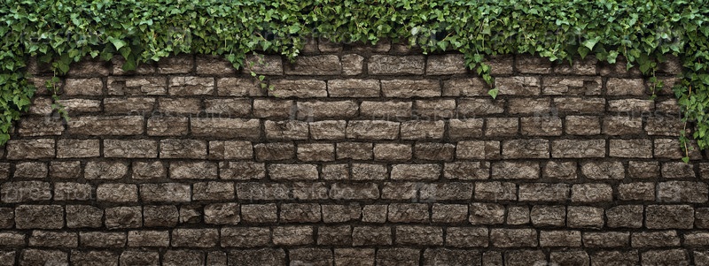 Панорамное вьющееся растение на старой каменной кирпичной стене