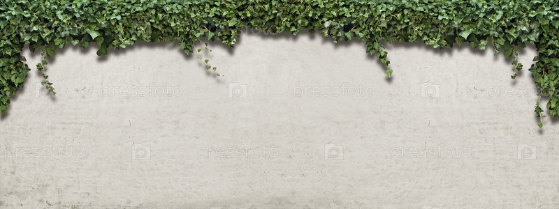 Панорамное вьющееся растение на белых гипсовых стенах
