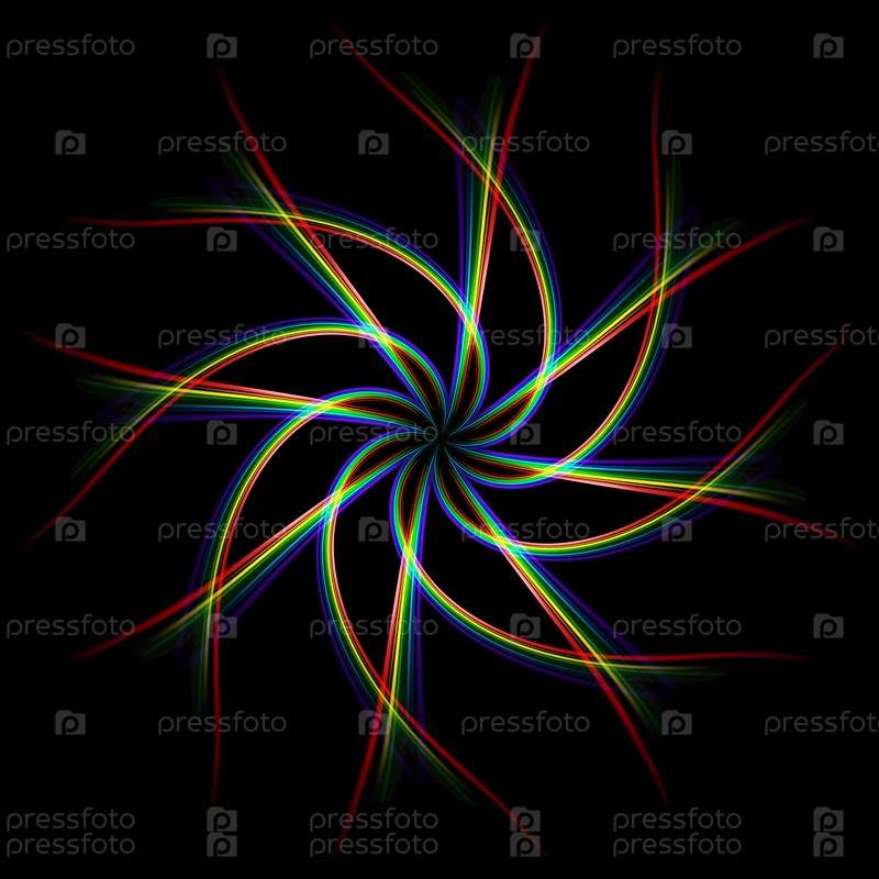 Элемент дизайна восьмиконечной звезды, состоящий из красочных светящихся линий на черном