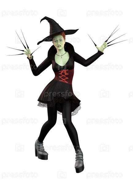 3D-рендеринг зеленокожей ведьмы с длинными ногтями