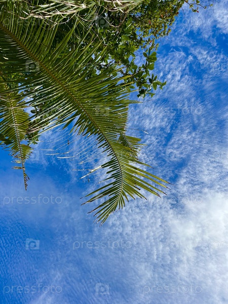 Лето море Кипр остров Афродиты.Пальма на фоне голубого неба