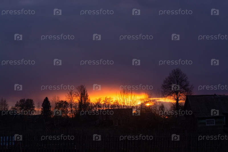 Невероятно красивый, красочный закат на вечернем небе