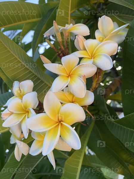 Цветок Альмерии желтый цветок плюмерии и цветение на дереве франжипани