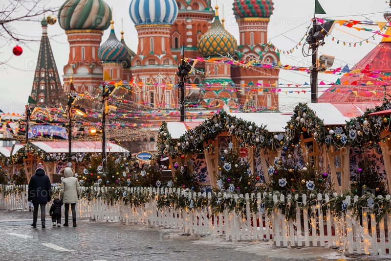 Рождественское украшение Красной площади. Красивые праздничные украшения в городе. Рождественские украшения улиц. Москва, Красная площадь, декабрь 2023 г