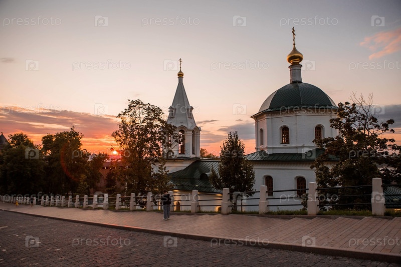 Церковь Симеона Столпника и Белая башня на закате. Нижегородский Кремль. Россия, Нижний Новгород, август 2023 г