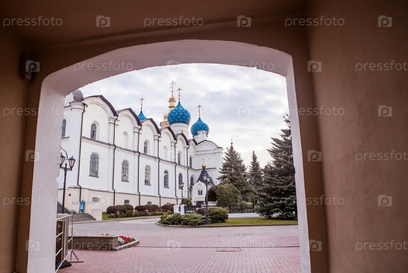 Православная церковь Казанского Кремля на закате. Благовещенский собор на территории Кремля. Республика Татарстан, Казань, сентябрь 2023 г