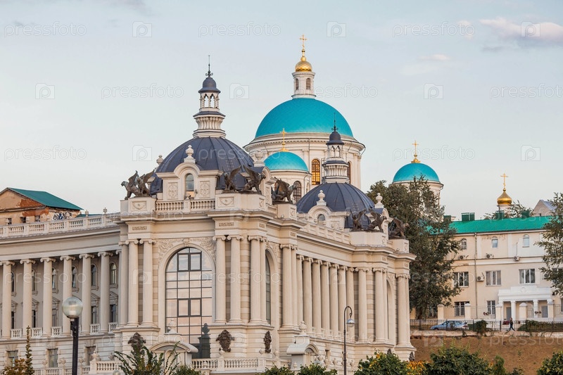 Вид на Дворец земледельцев теплым летним вечером. Россия, Республика Татарстан, г. Казань, сентябрь 2023 г