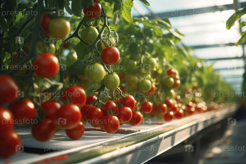 Растение томата растет в овощной теплице на гидропонике, экологически чистом бизнесе, тепличной гидропонике. система капельного орошения для растений