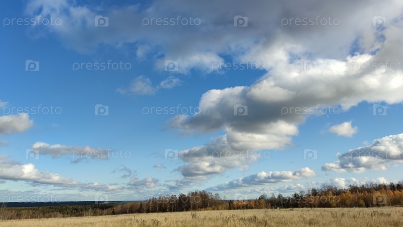 Облака нависают над полем ровными рядами