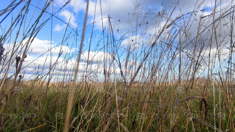 Высокая желтая сухая трава на лугу
