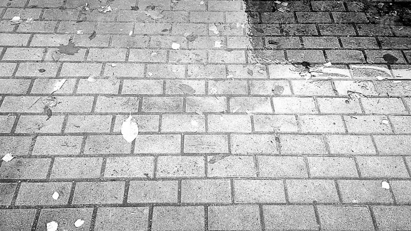 Лужа воды на серой дороге