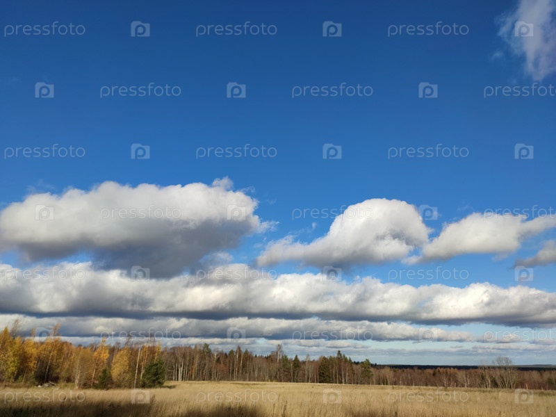 Облака нависают над полем ровными рядами