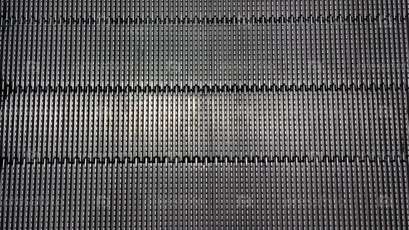Гофрированная металлическая поверхность. Светло-серая гладкая поверхность со множеством одинаковых прямоугольных выступов на ней. Выступы расположены ровными симметричными рядами в трех секциях