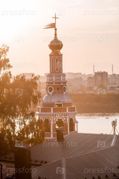Религия и культура. Церковь Рождества Христова на закате, вид с холма. Россия, Нижний Новгород, август 2023 г