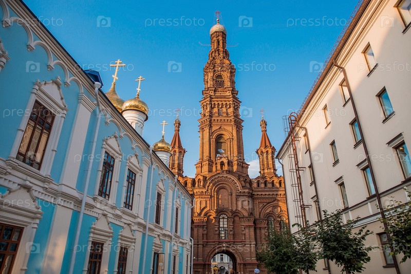 Богоявленский собор и колокольня на улице Баумана. Казань, Республика Татарстан, Россия, сентябрь 2023 г