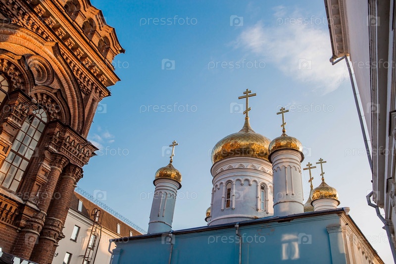 Богоявленский собор и колокольня на улице Баумана. Казань, Республика Татарстан, Россия, сентябрь 2023 г