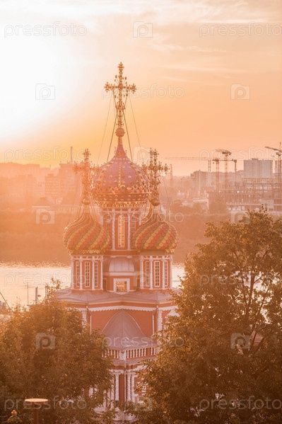 Религия и культура. Церковь Рождества Христова на закате, вид с холма. Россия, Нижний Новгород, август 2023 г