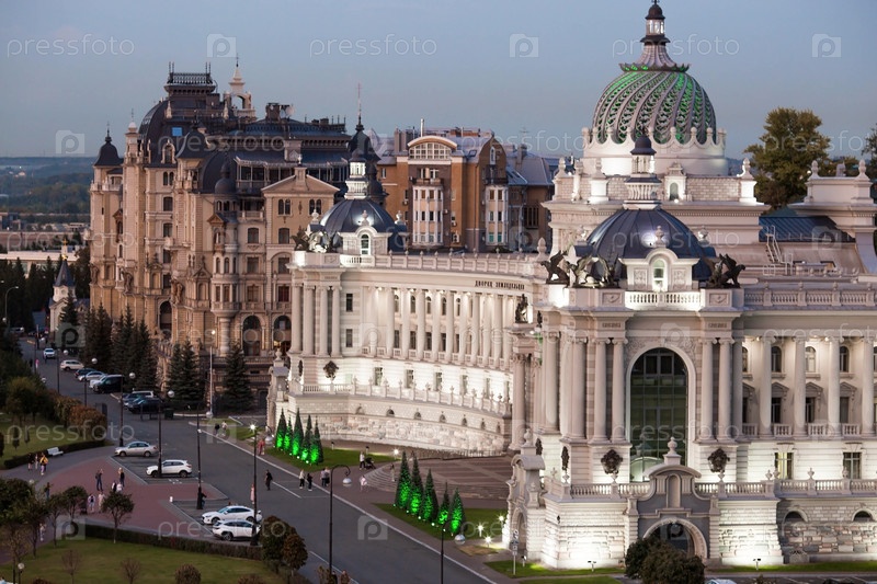 Вид на Дворец земледельцев теплым летним вечером. Россия, Республика Татарстан, г. Казань, сентябрь 2023 г