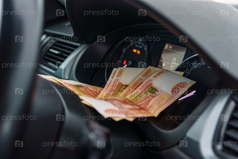 Деньги лежат на приборной панели автомобиля