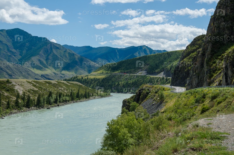 Река Катун и горный серпантин летом, Алтай