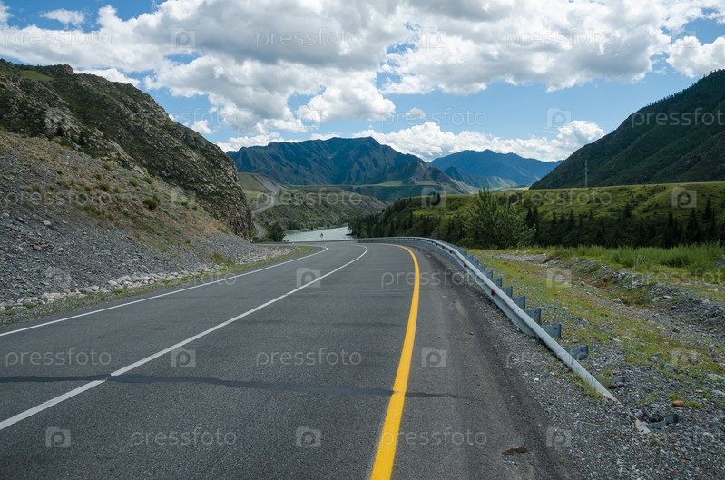 Дорога в горах летом, Чуйский тракт, река Катунь, Алтай
