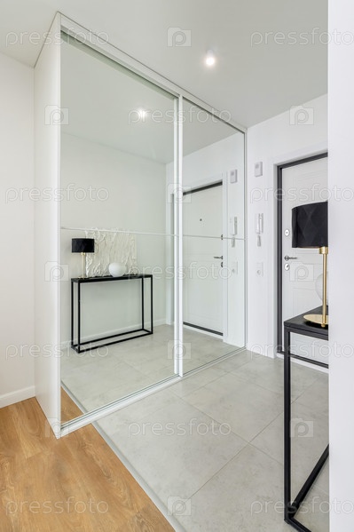Минималистский коридор с современным дизайном интерьера в современной квартире