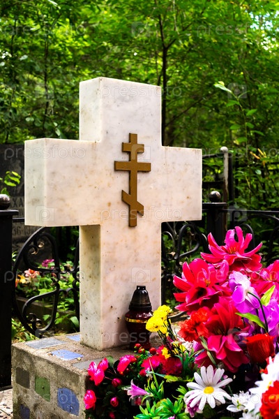 Мраморный крест на могиле русского поэта Николая Рубцова