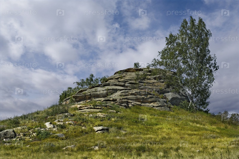 Юг Западной Сибири, Алтайский край. Причудливые скалистые выходы в бескрайних степях Алтая вокруг озера Колывань, расположенного недалеко от границы с Казахстаном