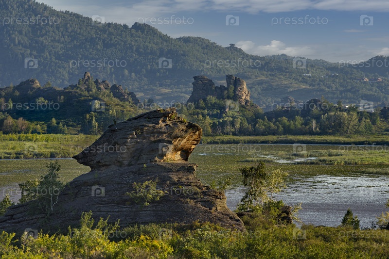 Юг Западной Сибири, Алтайский край. Причудливые скалистые выходы в бескрайних степях Алтая вокруг озера Колывань, расположенного недалеко от границы с Казахстаном