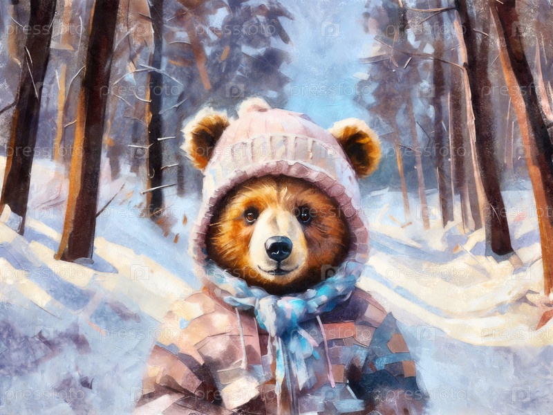 Милый медведь в зимней одежде