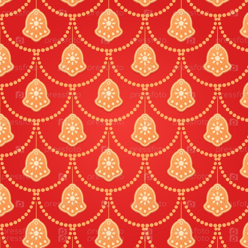 Бесшовный узор с рождественским колокольчиком на красном фоне