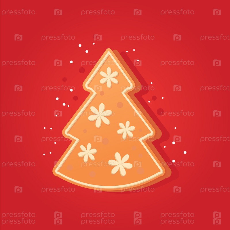 Рождественская пряничная елка на красном фоне