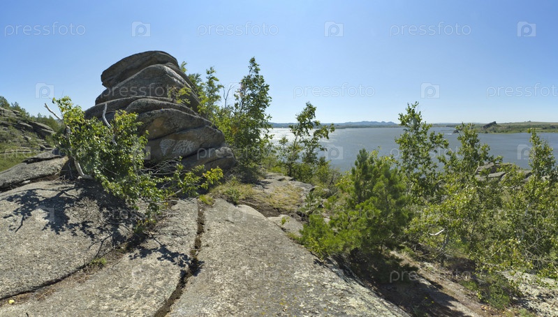 Юг Западной Сибири, Алтайский край. Причудливые скалистые выходы в бескрайних степях Алтая вокруг озера Колывань, расположенного недалеко от границы с Казахстаном