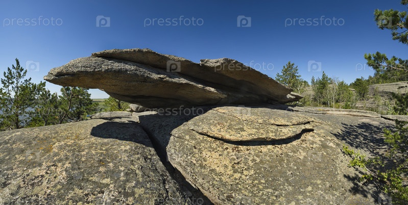 Юг Западной Сибири, Алтайский край. Причудливые скалистые выходы в бескрайних степях Алтая вокруг озера Колывань, расположенного недалеко от границы с Казахстаном