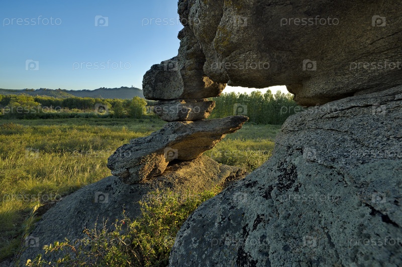 Юг Западной Сибири, Алтайский край. Причудливые скалистые выходы в бескрайних степях Алтая вокруг озера Колывань, расположенного недалеко от границы с Казахстаном