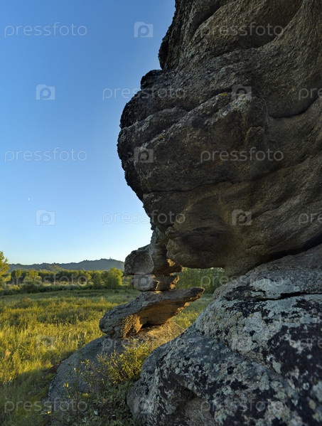 Юг Западной Сибири, Алтайский край. Причудливые скалистые выходы в бескрайних степях Алтая вокруг озера Колывань, расположенного недалеко от границы с Казахстаном