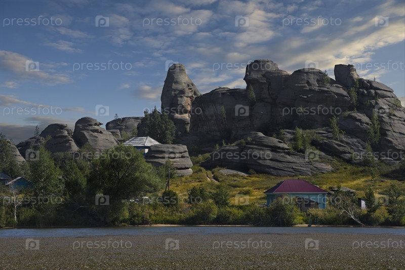 Юг Западной Сибири, Алтайский край. Причудливые скалистые выходы в бескрайних степях Алтая вокруг озера Колывань, расположенного недалеко от границы с Казахстаном