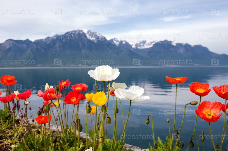 Женевское озеро и разноцветные маки