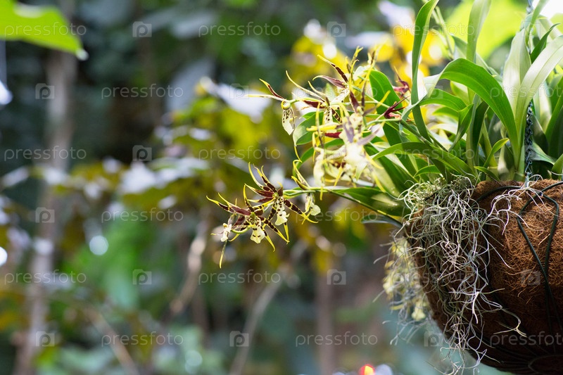 Орхидея в горшках в теплице