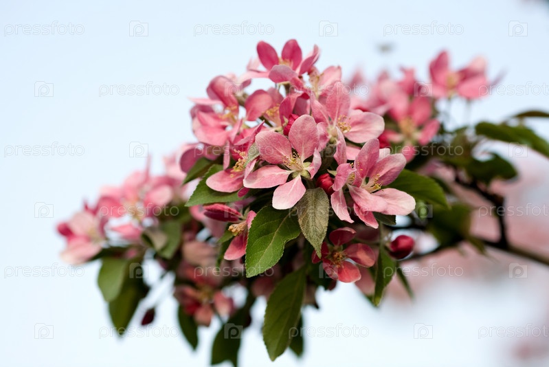 Цветущая розовая яблоня