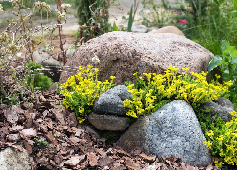 Желтый очиток на альпийской горке